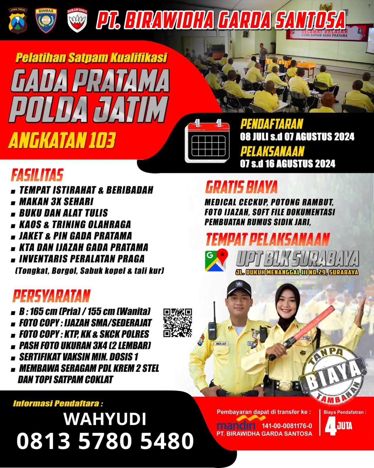 - Membawa Seragam PDL Cream 2 Stel dan Topi Satpam Coklat